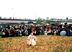 ■MILESTONE・トピックス■ 中川幸夫「花狂」 ー天空散華・妻有に乱舞するチューリップ ー 2002年5月18日(土) 記録 第2回大地の芸術祭 越後妻有アートトリエンナーレ2003 プレイイベントとして開催されたもの