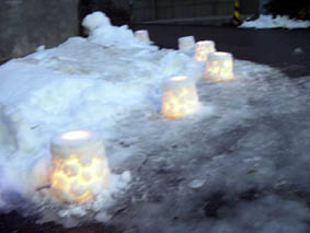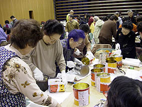 ■高岡市ボランティア連絡協議会 「スティール・ランタン」製作風景 日時:2003年1月22日(水) 参加者:高岡市ボランティア連絡協議会会員150人 協 力:高岡市手をつなぐ会造形クラブ 高岡短期大学・デザイン科学生 高岡市民会館ホールサポーター「パープル」 高岡市民会館スタッフ ナガシマヨシホ