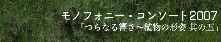 あらたな音律の可能性を追求する合奏団「モノフォニー・コンソート」は、結成されて十年くらいが経ちました。その間、ハリー・パーチやルー・ハリソン、テリー・ライリーなどのあらたな音律に目覚めた音楽を演奏してきました。今回の公演「植物の形姿